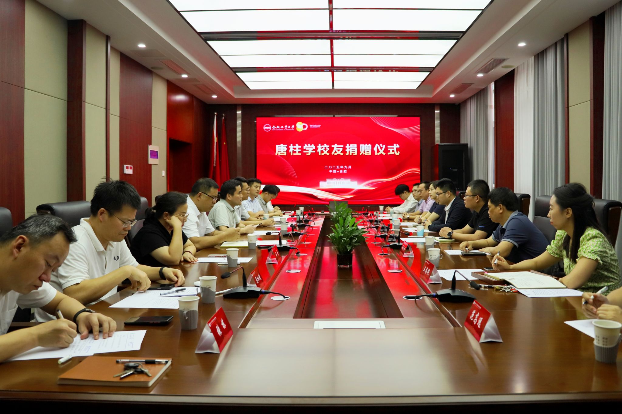 捐赠人代表陈永明介绍了公司发展现状,他表示唐柱学校友对母校常怀感恩之情,始终将“厚德,笃学,崇实,尚新”的校训铭记于心,致力于服务国家重大战略需求。此次捐赠100万元用于学科建设,未来将继续深化产学研合作,巩固校企交流平台,供给优质就业岗位,为母校事业开拓创新提供持续支持。