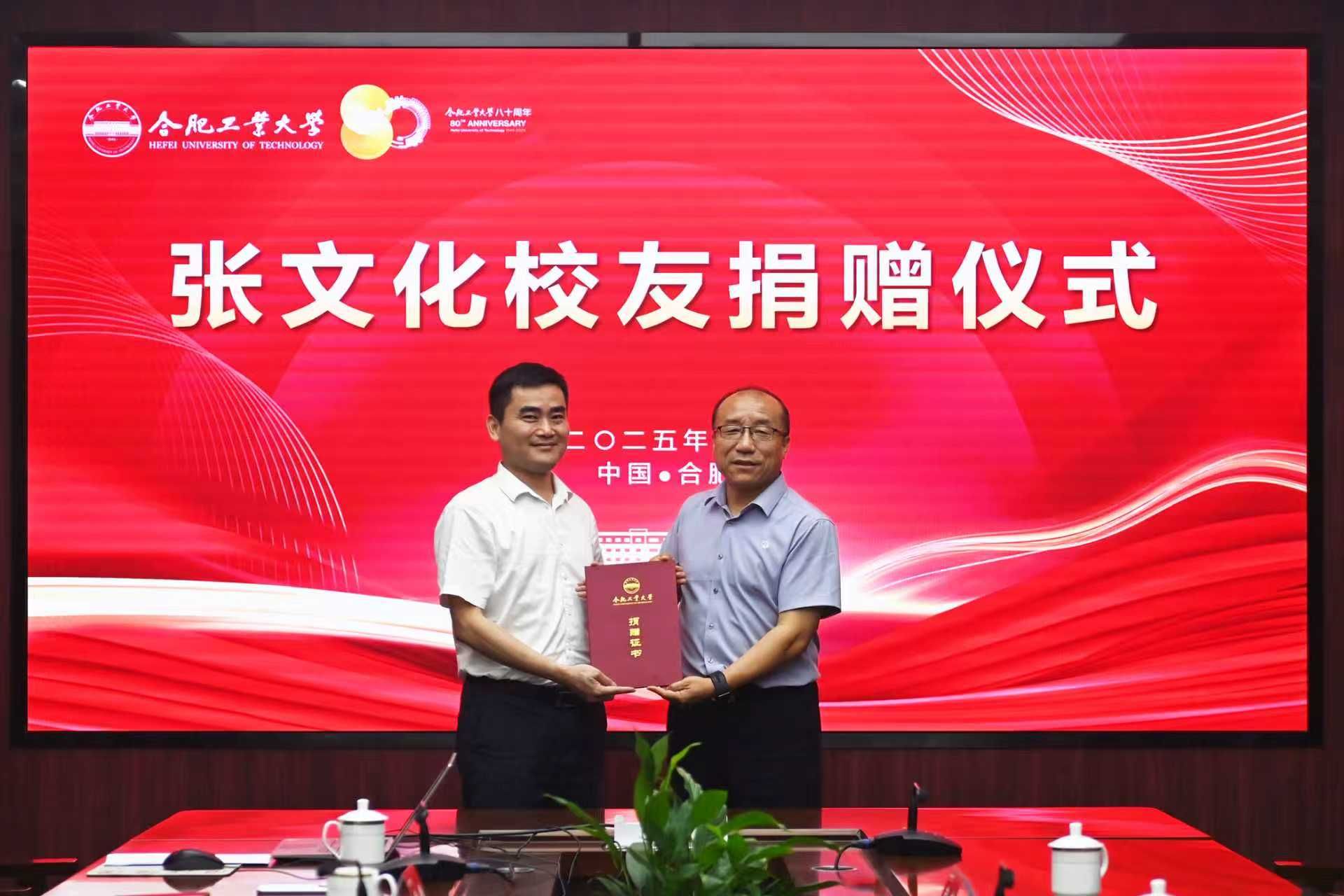 随着80周年校庆日益临近,校友们积极捐赠助力学校教育事业发展的热情持续高涨。9月28日,广东德尔智慧科技股份有限公司董事长及总经理、合肥工业大学智能制造行业校友会会长张文化校友以个人名义向学校捐赠100万元。校党委副书记严福平出席捐赠仪式并讲话。