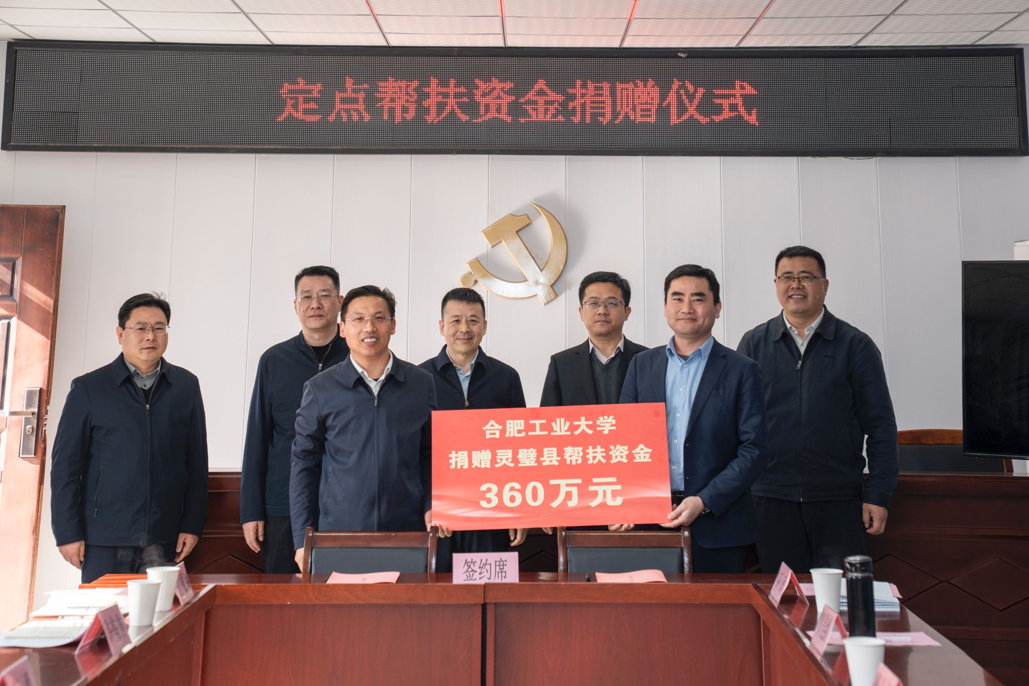 在定点帮扶资金捐赠仪式上,合肥工业大学向灵璧县捐赠360万元帮扶资金;双方代表签署了灵璧县优质农副产品采购意向协议。灵璧县副县长谢宜兵、利辛县副县长张文成以及驻村干部代表围绕挂职、驻村工作经历作了专题汇报,校地双方围绕进一步深化校地合作、赋能乡村振兴等进行了深入交流研讨。