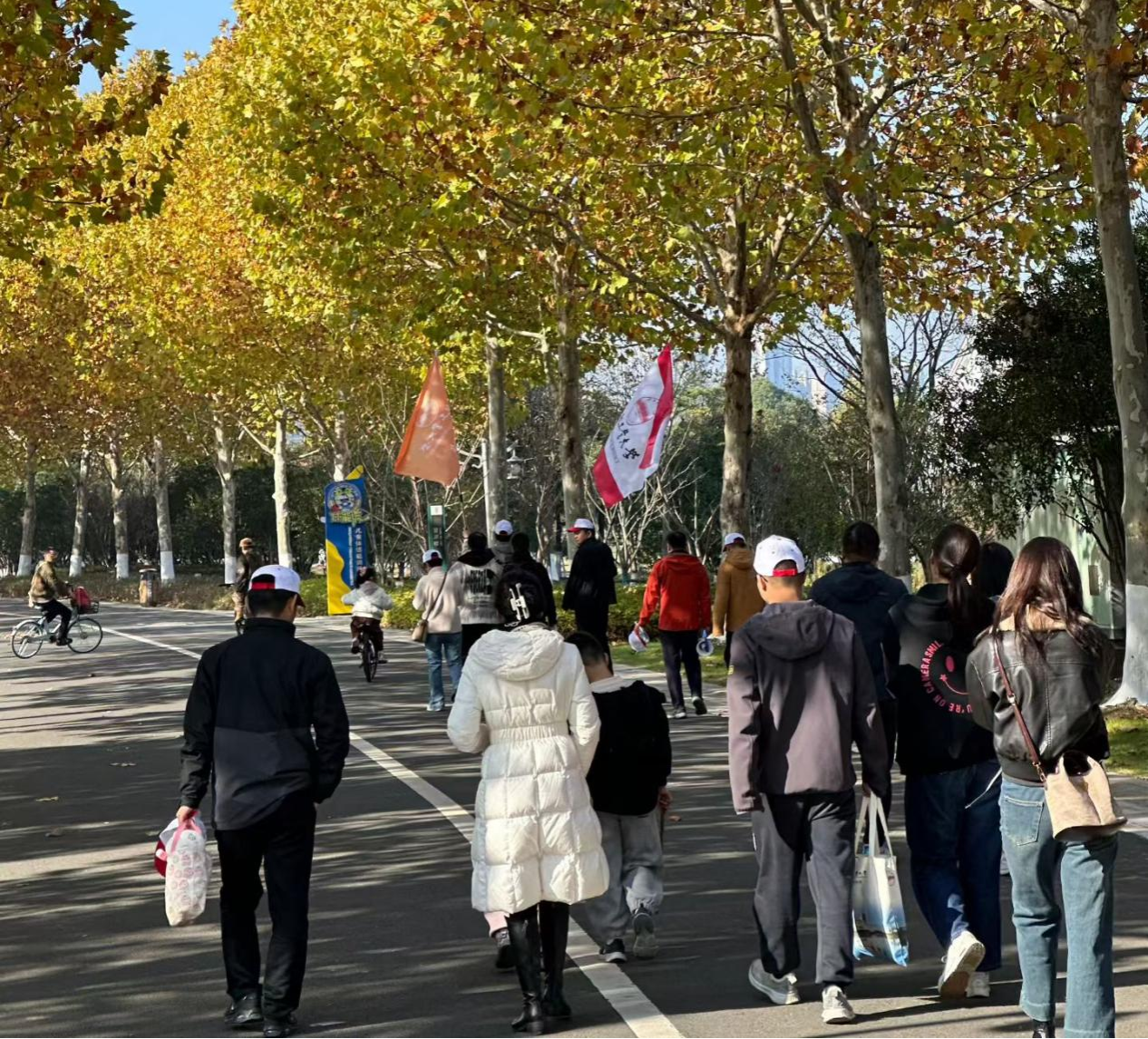 随着出发口令响起,校友们沿着宛陵湖绿道健步前行。暖阳洒在湖面,波光粼粼;身旁草木虽染秋霜,却更显苍劲。大家步伐矫健,时而畅谈工作生活,时而交流行业动态,时而驻足欣赏湖光山色,欢声笑语回荡在步道之上。沿途的美景与校友间的热络交流,让这场健步走成为一次温馨的“团圆之旅”。