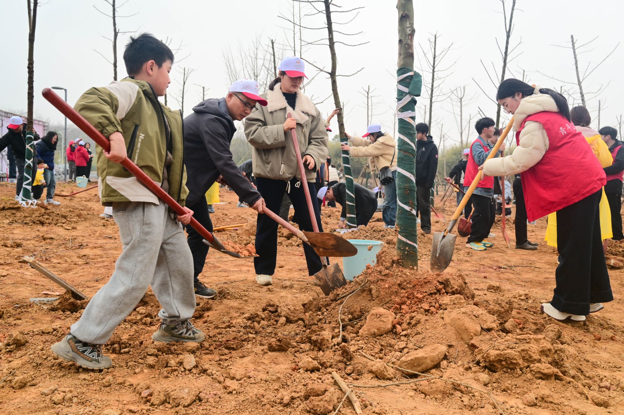 植树现场秩序井然。校友们以家庭或小组为单位,分工协作、配合默契,认真完成挖坑栽树、扶正苗木、浇水养护等环节。在大家的共同努力下,一株株新苗整齐挺立,为校园增添了生机与活力。此项活动是校友们反哺母校、共建绿色家园的集体行动,“校友林”必将成为承载共同记忆、联结母校与校友的情感纽带。